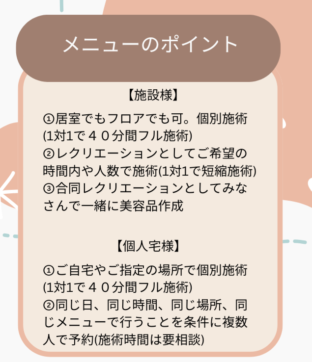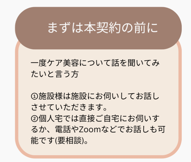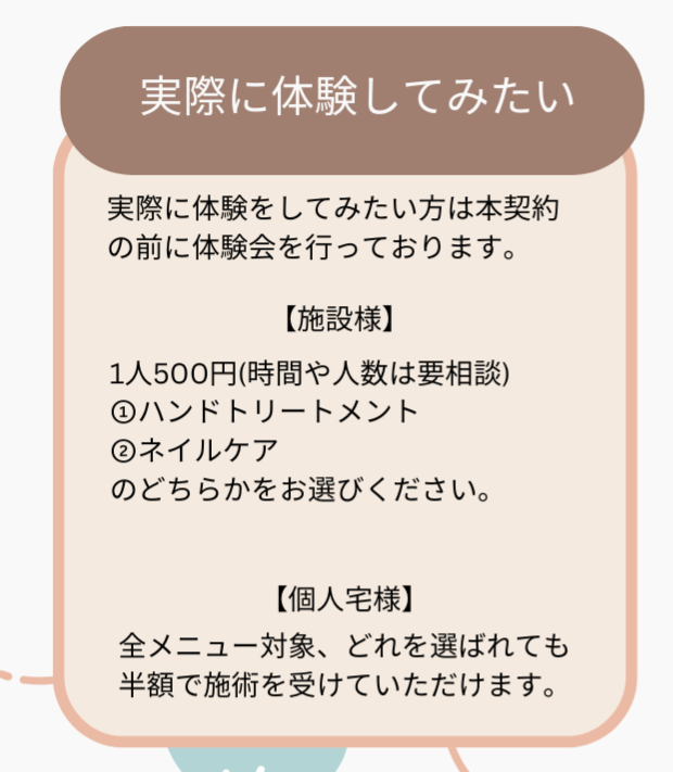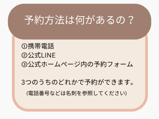 すでに予定が埋まっている場合はお断りさせていただきますので、予約時に複数の希望日時を書いていただけるとご希望に沿いやすいです。よろしくお願い致します。